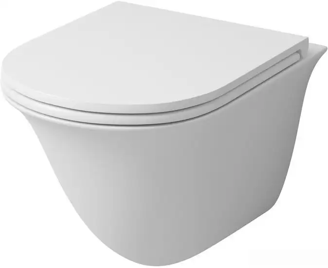 подвесной, конструкция: без бачка, задний подвод воды, горизонтальный выпуск, с сиденьем, безободковый