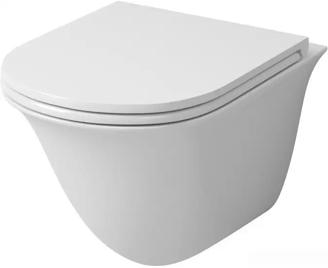 подвесной, конструкция: без бачка, задний подвод воды, горизонтальный выпуск, с сиденьем, безободковый