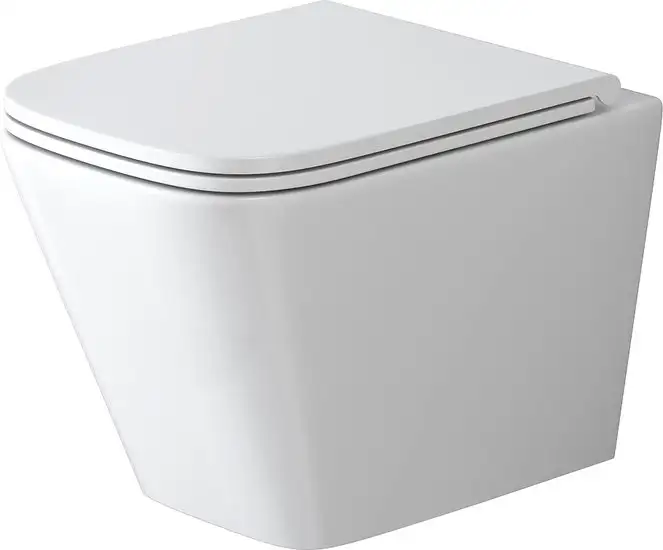 подвесной, конструкция: без бачка, задний подвод воды, горизонтальный выпуск, с сиденьем, безободковый