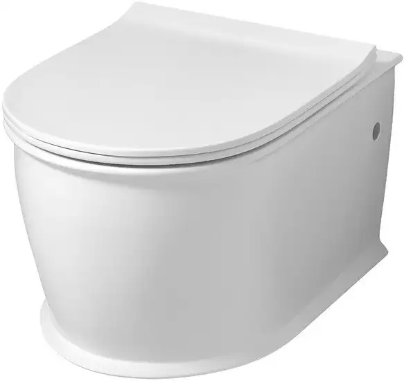 подвесной, конструкция: без бачка, задний подвод воды, горизонтальный выпуск, с сиденьем, безободковый