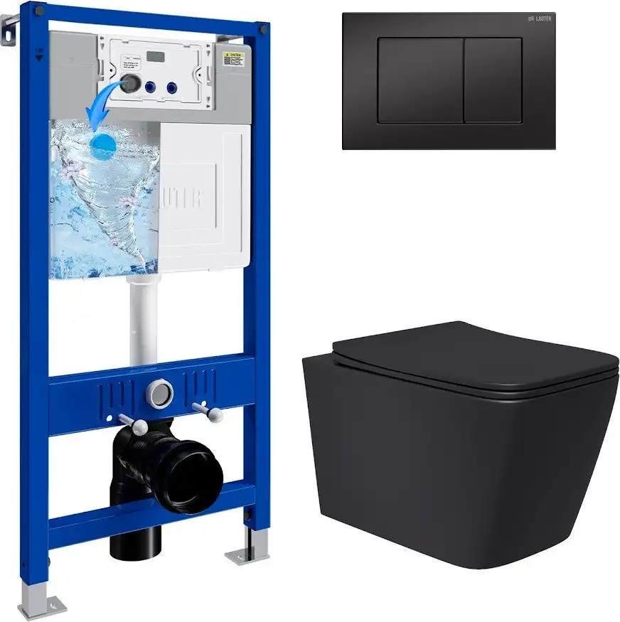 Унитаз подвесной Lauter Magdeburg 21103EC + 21901002 (кнопка прямоугольная, черный)