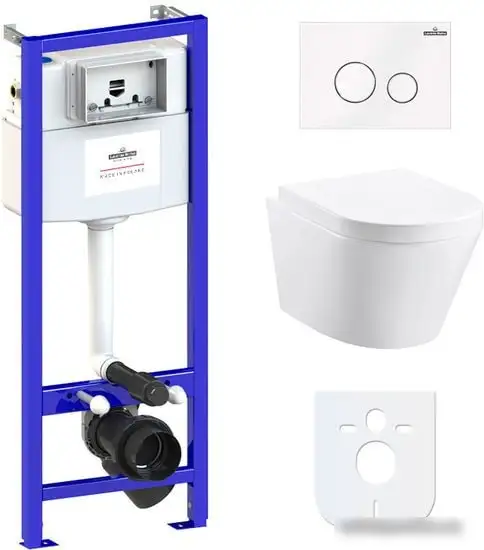 подвесной, без бачка, задний подвод воды, горизонтальный выпуск, двухрежимный слив, с сиденьем