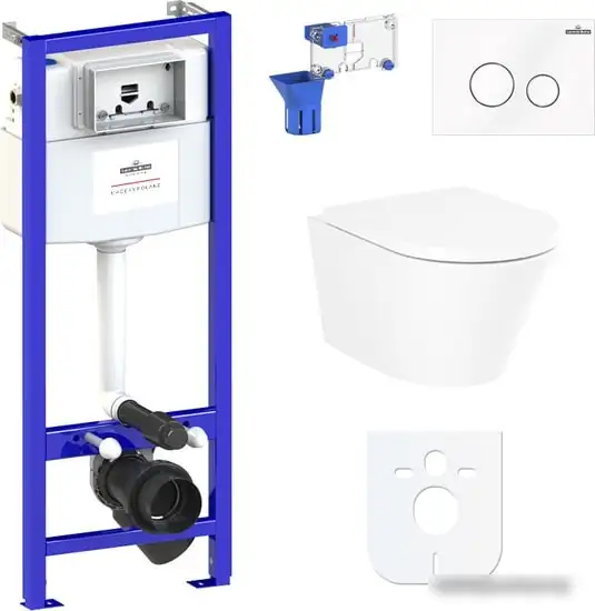 подвесной, конструкция: без бачка, задний подвод воды, горизонтальный выпуск, двухрежимный слив, с сиденьем