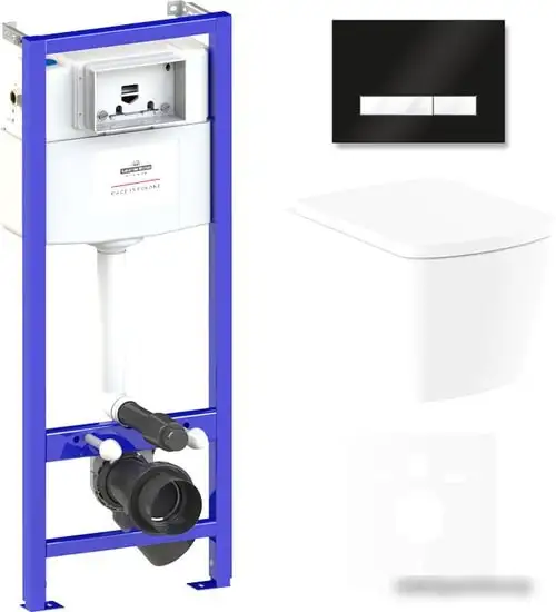 подвесной, конструкция: без бачка, задний подвод воды, горизонтальный выпуск, двухрежимный слив, с сиденьем