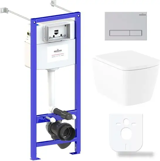 подвесной, конструкция: без бачка, задний подвод воды, горизонтальный выпуск, двухрежимный слив, с сиденьем