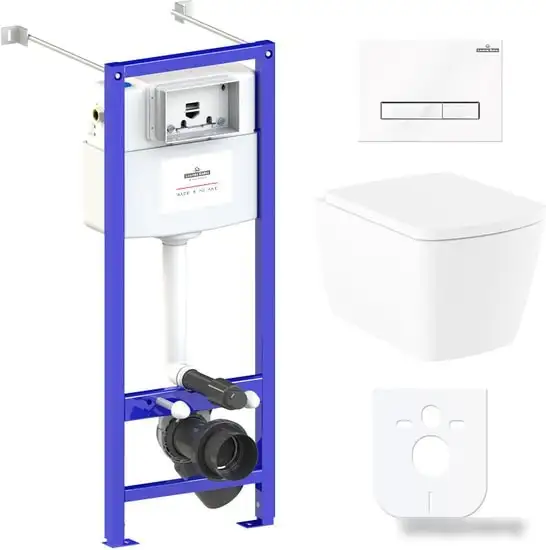 подвесной, конструкция: без бачка, задний подвод воды, горизонтальный выпуск, двухрежимный слив, с сиденьем