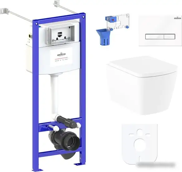 подвесной, конструкция: без бачка, задний подвод воды, горизонтальный выпуск, двухрежимный слив, с сиденьем