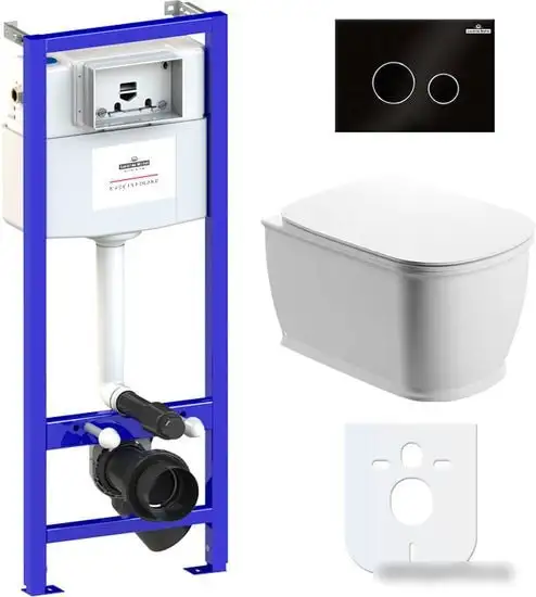 подвесной, без бачка, задний подвод воды, горизонтальный выпуск, двухрежимный слив, с сиденьем
