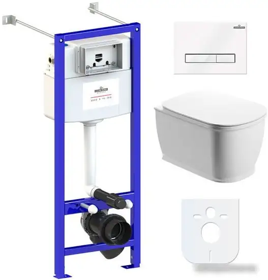 подвесной, без бачка, задний подвод воды, горизонтальный выпуск, двухрежимный слив, с сиденьем