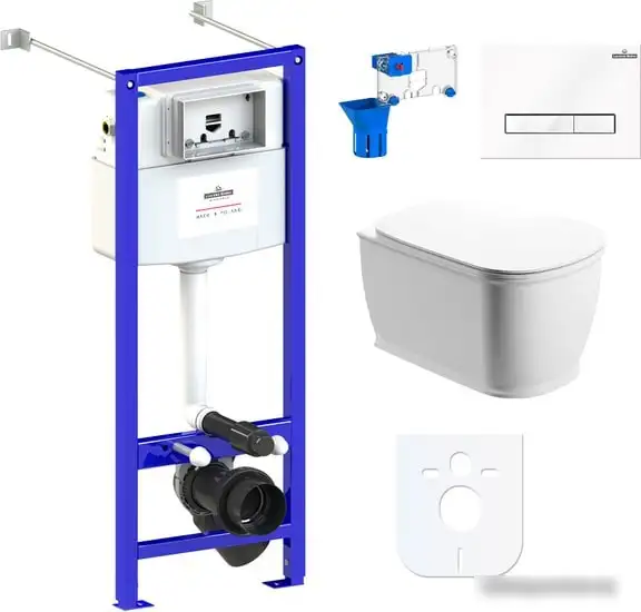 подвесной, конструкция: без бачка, задний подвод воды, горизонтальный выпуск, двухрежимный слив, с сиденьем