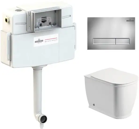 приставной, низкорасположенный бачок, задний подвод воды, универсальный выпуск, двухрежимный слив, с сиденьем