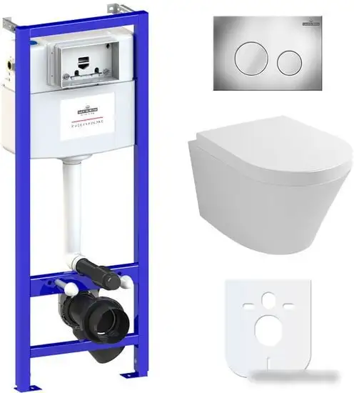 подвесной, без бачка, задний подвод воды, горизонтальный выпуск, двухрежимный слив, с сиденьем
