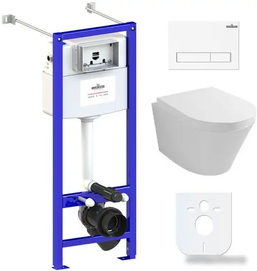 подвесной, без бачка, задний подвод воды, горизонтальный выпуск, двухрежимный слив, с сиденьем