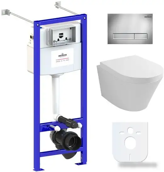 подвесной, без бачка, задний подвод воды, горизонтальный выпуск, двухрежимный слив, с сиденьем