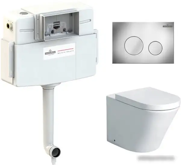 приставной, низкорасположенный бачок, задний подвод воды, универсальный выпуск, двухрежимный слив, с сиденьем