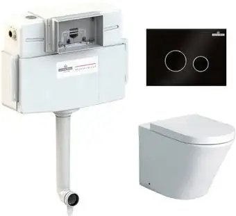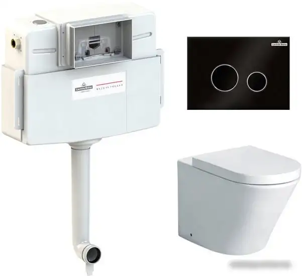 приставной, низкорасположенный бачок, задний подвод воды, универсальный выпуск, двухрежимный слив, с сиденьем