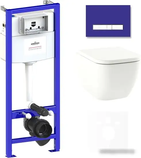 подвесной, конструкция: без бачка, задний подвод воды, горизонтальный выпуск, двухрежимный слив, с сиденьем