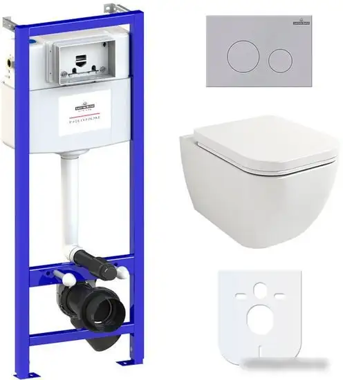 подвесной, без бачка, задний подвод воды, горизонтальный выпуск, двухрежимный слив, с сиденьем