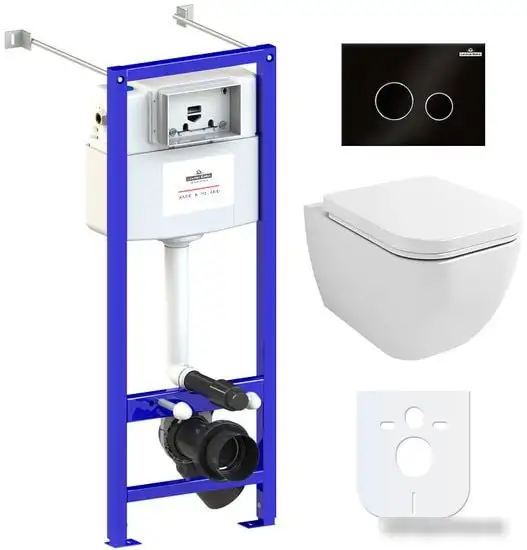 подвесной, без бачка, задний подвод воды, горизонтальный выпуск, двухрежимный слив, с сиденьем