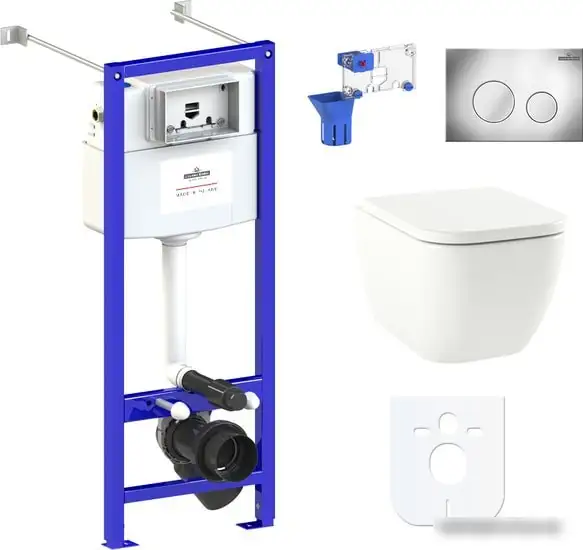 подвесной, конструкция: без бачка, задний подвод воды, горизонтальный выпуск, двухрежимный слив, с сиденьем