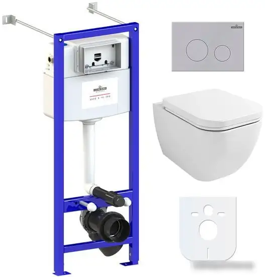 подвесной, без бачка, задний подвод воды, горизонтальный выпуск, двухрежимный слив, с сиденьем