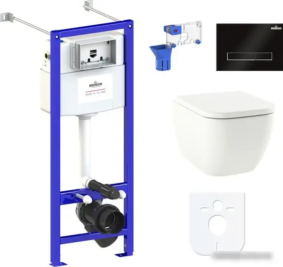 подвесной, конструкция: без бачка, задний подвод воды, горизонтальный выпуск, двухрежимный слив, с сиденьем