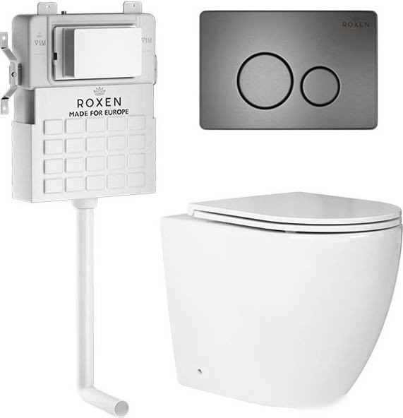 Унитаз приставной Roxen Antares в комплекте с инсталляцией Attach 5 в 1 967074 (кнопка: оружейная сталь)