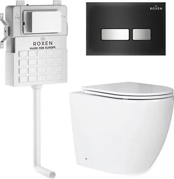 Унитаз приставной Roxen Antares в комплекте с инсталляцией Attach 5 в 1 967099 (кнопка: черный)