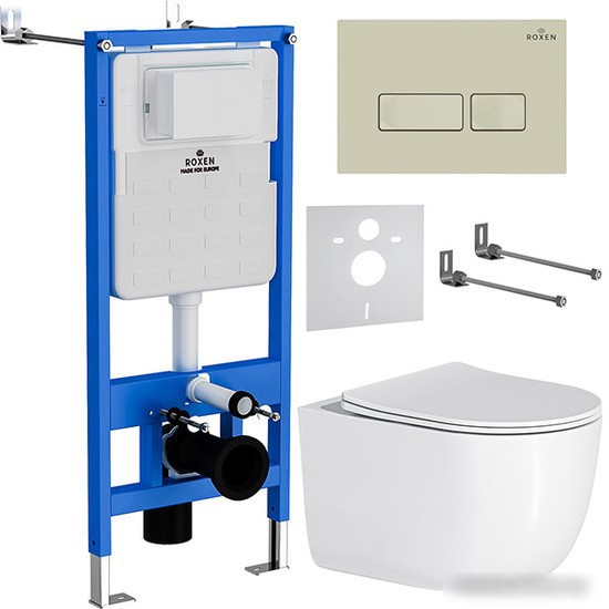 Унитаз подвесной Roxen Vortex в комплекте с инсталляцией StounFix Slim 6 в 1 966745 (кнопка: бежевый)