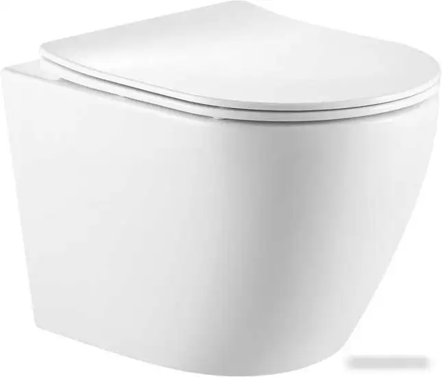подвесной, конструкция: без бачка, задний подвод воды, горизонтальный выпуск, с сиденьем, безободковый