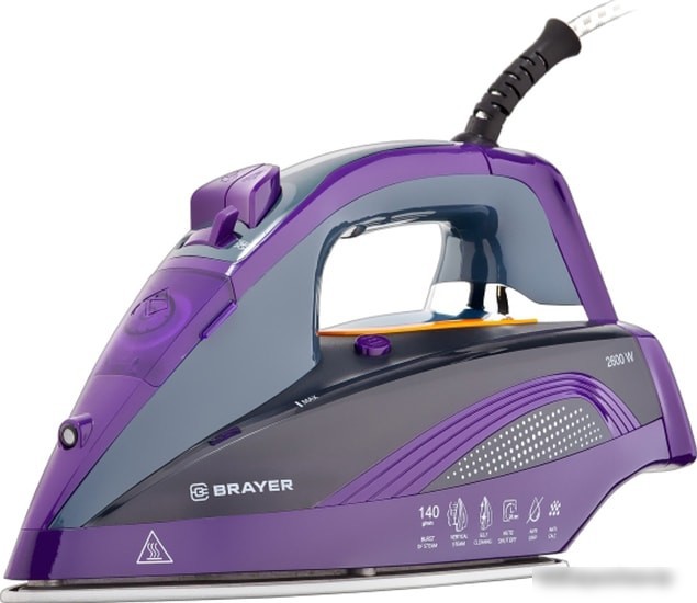 Утюг Brayer BR4001 работает с мощностью 2600 Вт и использует керамическую подошву, которая легко скользит по ткани и защищает ее. Он обеспечивает постоянную подачу пара до 25 г/мин и паровой удар до 140 г/мин, что помогает быстро разгладить даже сильные заломы. Встроенный резервуар для воды объемом 360 мл позволяет долго гладить без частой заправки. Утюг имеет функцию вертикального отпаривания, подходит для одежды на вешалке. Он регулирует температуру автоматически и поддерживает оптимальную для всех тканей. Благодаря системе защиты от накипи и противокапельной системе, он сохраняет свою работоспособность дольше и не оставляет разводов. Устройство оснащено автоматическим отключением для безопасности. В комплекте есть мерный стаканчик для воды. Длина шнура составляет 1.9 м, что обеспечивает свободу движения во время глажки.