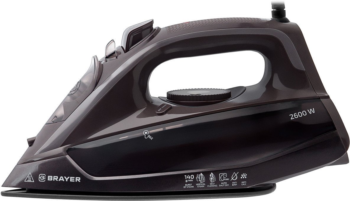Утюг Brayer BR4020 предназначен для качественной глажки с мощностью 2600 Вт и паровой системой. Он делает простым процесс глажки благодаря постоянной подаче пара до 25 г/мин и паровому удару 140 г/мин, который быстро разглаживает складки. Благодаря паровому увлажнению и подошве из керамики, утюг легко скользит по тканям и предотвращает пригорание. Объем резервуара для воды составляет 380 мл, что позволяет долго гладить без частых заполнений. С функцией вертикального отпаривания вы можете разглаживать повязки и шторы прямо на вешалке. За защиту от накипи отвечает встроенная система, а противокапельная система предотвращает протекания воды. Утюг автоматически отключается при бездействии для безопасности, а длинный шнур 1.9 м обеспечивает свободное движение. Также он оснащен спреем для локальной обработки трудных пятен.