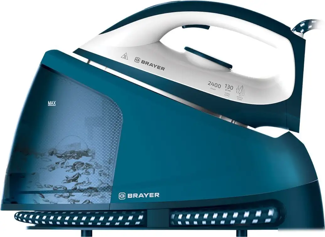 Утюг Brayer BR4156 — это устройство с мощностью до 2400 Вт, которое быстро нагревается за 1 минуту. Он оснащён керамической подошвой, которая равномерно скользит по ткани и легко очищается от накипи. Благодаря паровому удару до 380 г/мин и постоянной подаче пара 130 г/мин, он эффективно разглаживает даже сложные складки. Регулируемая подача пара помогает выбрать оптимальный режим для разных тканей. Объём резервуара для воды составляет 1200 мл — этого достаточно для длительной работы без постоянной дозаправки. Утюг можно вертикально использовать для пара, что удобно для отпаривания одежды на вешалке. Параподавление поддерживает давление на уровне 6 бар, что обеспечивает сильный паровой удар. Конструкция выполнена в бело-бирюзовом цвете, она прочная и легкая в использовании. Устройство снабжено системой защиты от накипи, которая продлевает его срок службы. Соблюдая все меры безопасности, утюг обеспечивает быструю и эффективную гладку одежды без лишней заботы.