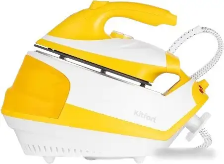 Утюг Kitfort KT-9135-1 — это беспроводной утюг с мощностью 2000 Вт, который быстро нагревается за 1 минуту. Он оснащён паровой системой с постоянной подачей пара до 35 г/мин и возможностью вертикального отпаривания, что удобно для глажки одежды на вешалке. Объём резервуара для воды составляет 1200 мл, что позволяет гладить много вещей без доливки воды. Прочная керамическая подошва легко скользит по тканям, а длина сетевого шнура 1,6 м даёт свободу движений. Этот утюг легкий (вес 4 кг) и удобный в использовании благодаря беспроводной конструкции. Он хорошо подходит для глажки разных тканей, и его дизайн выполнен в бело-жёлтых цветах. Также устройство обладает системой защиты от накипи, что увеличивает срок его службы.