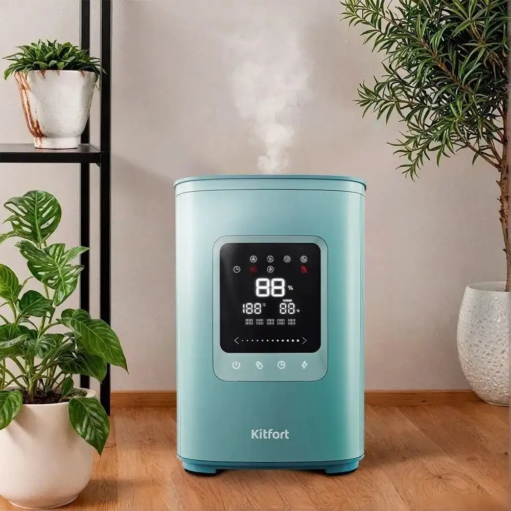 Увлажнитель воздуха Kitfort KT-3821 отлично подходит для поддержания комфортного уровня влажности в комнате. Он работает на ультразвуковом методе, создавая тихий шум не выше 35 дБ, что удобно для ночного использования. В устройстве есть сенсорное управление и подсветка корпуса, а также возможность автоматического поддержания влажности до 75%. Объем резервуара для воды составляет 4 литра, чего достаточно для продолжительного увлажнения до 8 часов. Можно установить таймер на различное время работы, есть ночной режим и пульт для удобства. Также в увлажнителе есть функции ионизации и ароматизации, что помогает улучшить качество воздуха в помещении. Благодаря этим возможностям он делает воздух более свежим и приятным для дыхания.