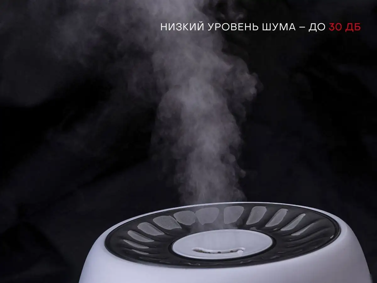 ультразвуковой, помещение до 32 м×, производительность 400 мл/ч, резервуар 4.8 л, ароматизация, шум 30 дБ, цвет белый