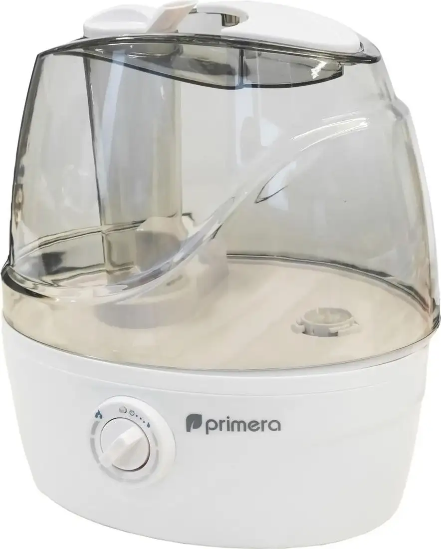 Влажнитель Primera HUP-R1022 подходит для помещений площадью до 20 м². Он использует ультразвуковой метод увлажнения, который быстро увеличивает влажность воздуха и работает очень тихо — всего 32 дБ. Объем бака для воды составляет 2,2 литра, что позволяет работать без долива воды до 10 часов. Устройство питается от сети 230 В и потребляет всего 25 Вт. Управление осуществляется механическим переключателем, что делает использование простым и удобным. Встроенная регулировка направления пара позволяет направлять влажность туда, куда нужно. Ботинка компактных размеров — 14x16x24,5 см, он лёгкий — всего 1,05 кг, и легко поместится в любую комнату. Увлажнитель не имеет автоматического поддержания влажности или автоматических программ, он предназначен для ручного контроля влажности. Его дизайн выполнен в белом прозрачном цвете, он отлично впишется в любой интерьер. При необходимости можно использовать дополнительные функции, такие как ароматизация воздуха, хотя в этой модели их нет.