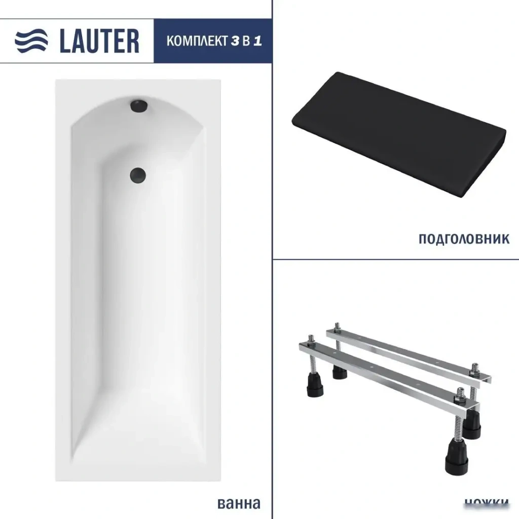 Ванна Lauter Amelia 160 21204060 (с ножками и черным подголовником)