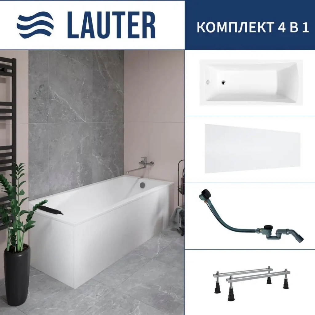 Ванна Lauter Aurora 170x70 21010070 (с ножками, лицевым экраном и сифоном 21Y32001 матовый черный)