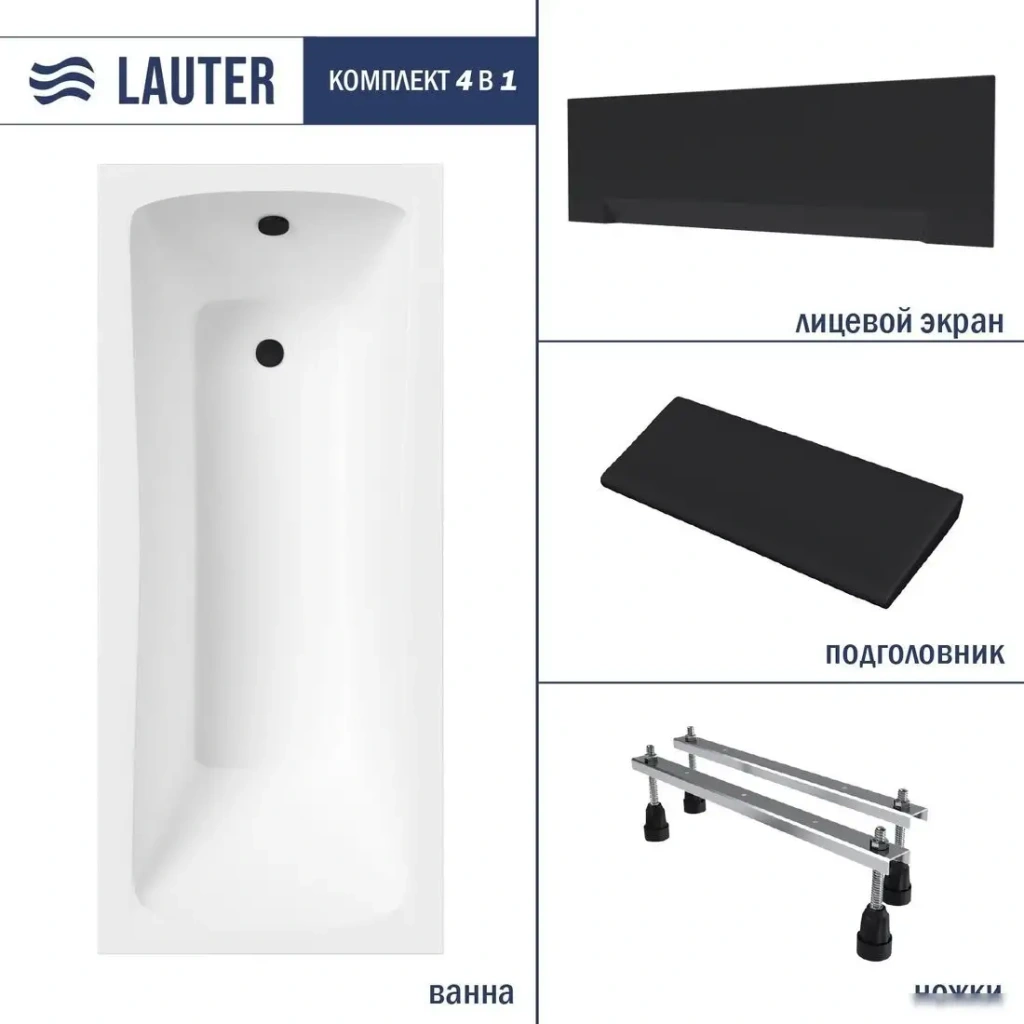 Ванна Lauter Bianca 150 21207150 (с ножками, черным подголовником и черным лиц.экраном)
