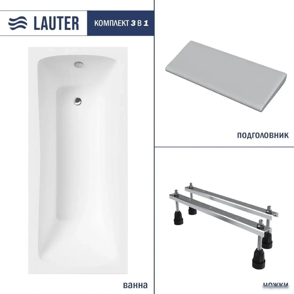 Ванна Lauter Bianca 170 21207170 (с ножками и серым подголовником)