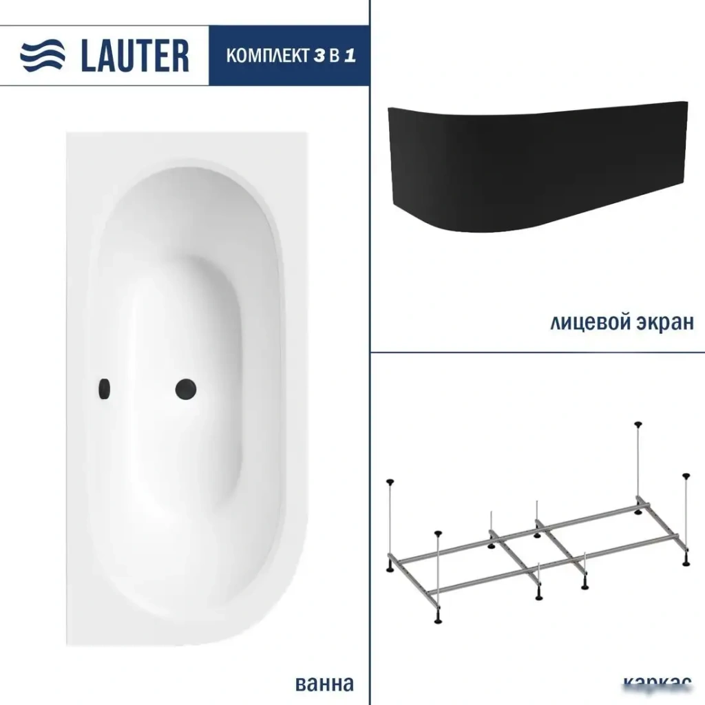 Ванна Lauter Bliss 150 P 21201052P (с каркасом и лицевым экраном черного цвета)
