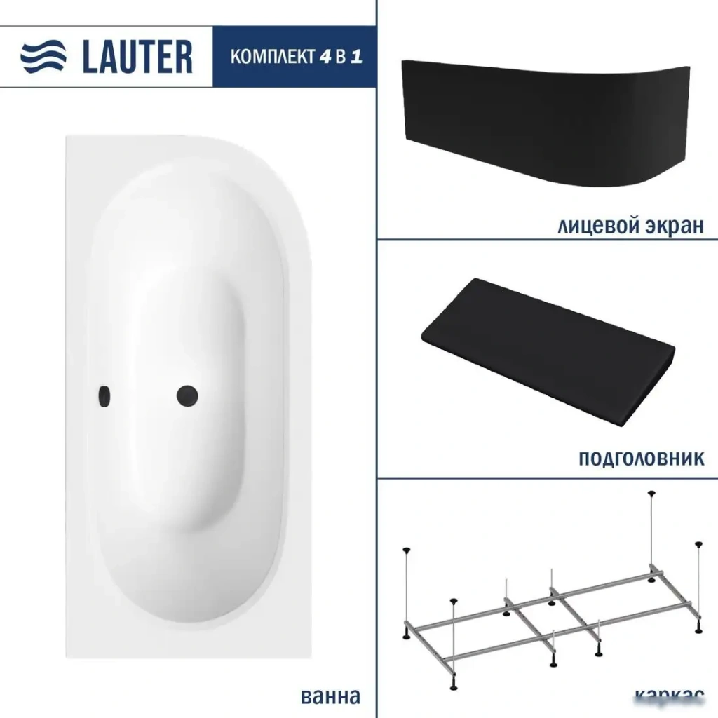 Ванна Lauter Bliss 160 L 21201061L (с каркасом/черный подголовн/черный лицевой экран)