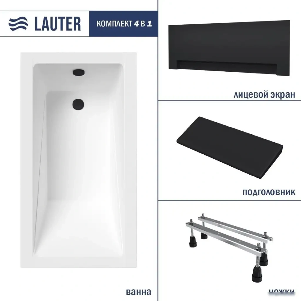 Ванна Lauter Estelle 120 21206020 (с ножками, черным подголовником и черным лиц. экраном)