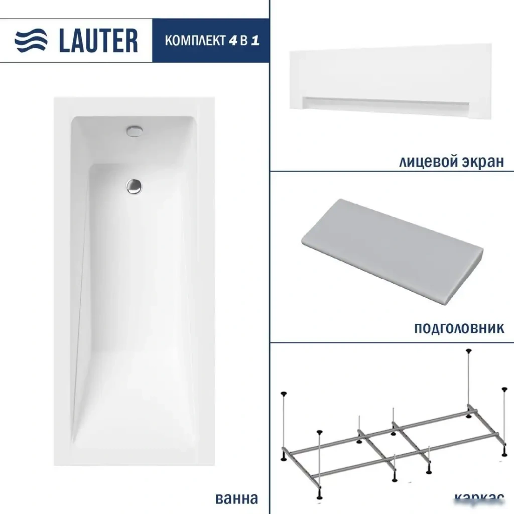 Ванна Lauter Estelle 180 21206080 (с каркасом, серым подголовником и белым лиц.экраном)