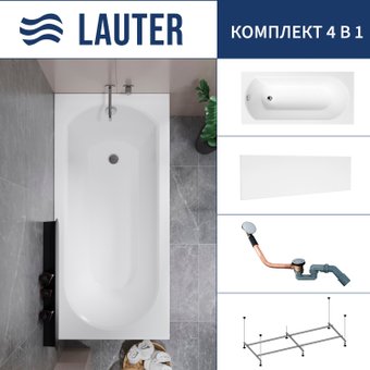 Ванна Lauter Haven 170 21202007 (с каркасом, лицевым экраном белого цвета и сифоном 21Y11020 хром)