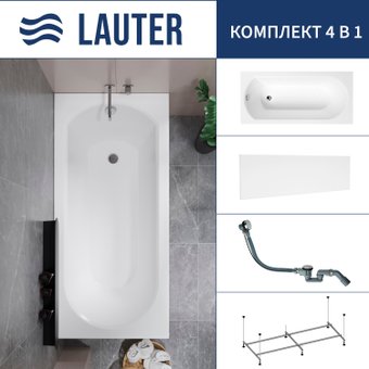 Ванна Lauter Haven 170 21202007 (с каркасом, лицевым экраном белого цвета и сифоном 21Y32000 хром)