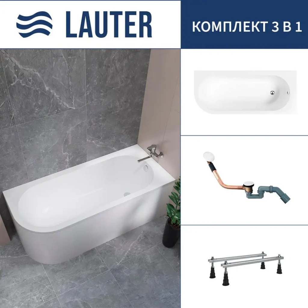 Ванна Lauter Monaco 170x72.5 обладает прочным акриловым корпусом с глянцевой белой поверхностью, которая легко очищается. Она установлена на ножках, что обеспечивает стабильность и удобство при уборке. Ванна предназначена для одного человека и занимает немного пространства, идеально подходит для современной ванной комнаты. Установка правого угла позволяет эффективно использовать полезную площадь комнаты. В комплект входит сифон и ножки, каркас приобретается отдельно, что дает возможность выбрать нужный вариант. Ванна не оснащена гидромассажем, подсветкой или смесителем, что делает её простым и надежным изделием. Ее гладкая поверхность и классический дизайн позволят легко сочетать с другими элементами интерьера. Дополнительных функций и сложных систем в ней нет, что повышает надежность и долговечность. Такой товар идеально подходит для тех, кто ищет простую и качественную ванну для ежедневного использования.