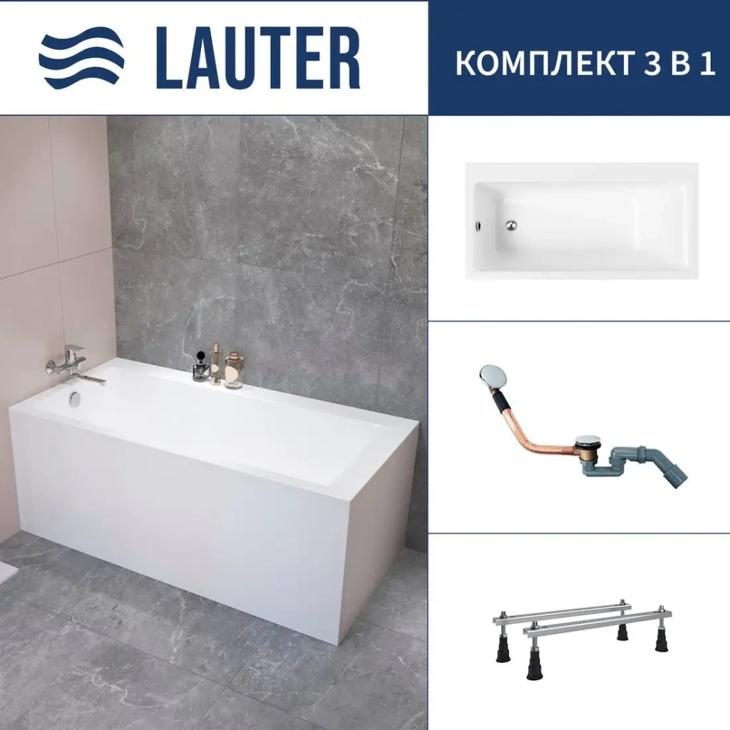 Ванна Lauter Seraphina 160x80 2112160L (с ножками и сифоном 21Y11030 хром)