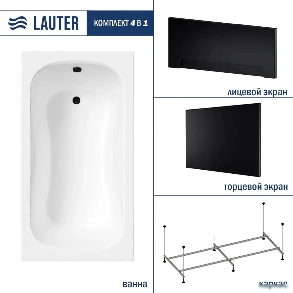 Ванна Lauter Sophia 130 21205130 (с каркасом, лицевым и торцевым экранами черного цвета)